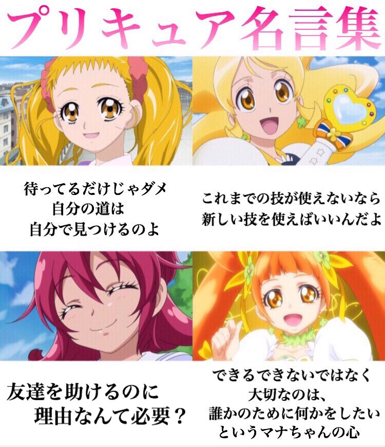 プリキュアファンが作成した 歴代プリキュアの名言集 から学ぶことが多すぎて 生涯学習 折れそうな心を助けられる みんなプリキュアを見よう Togetter